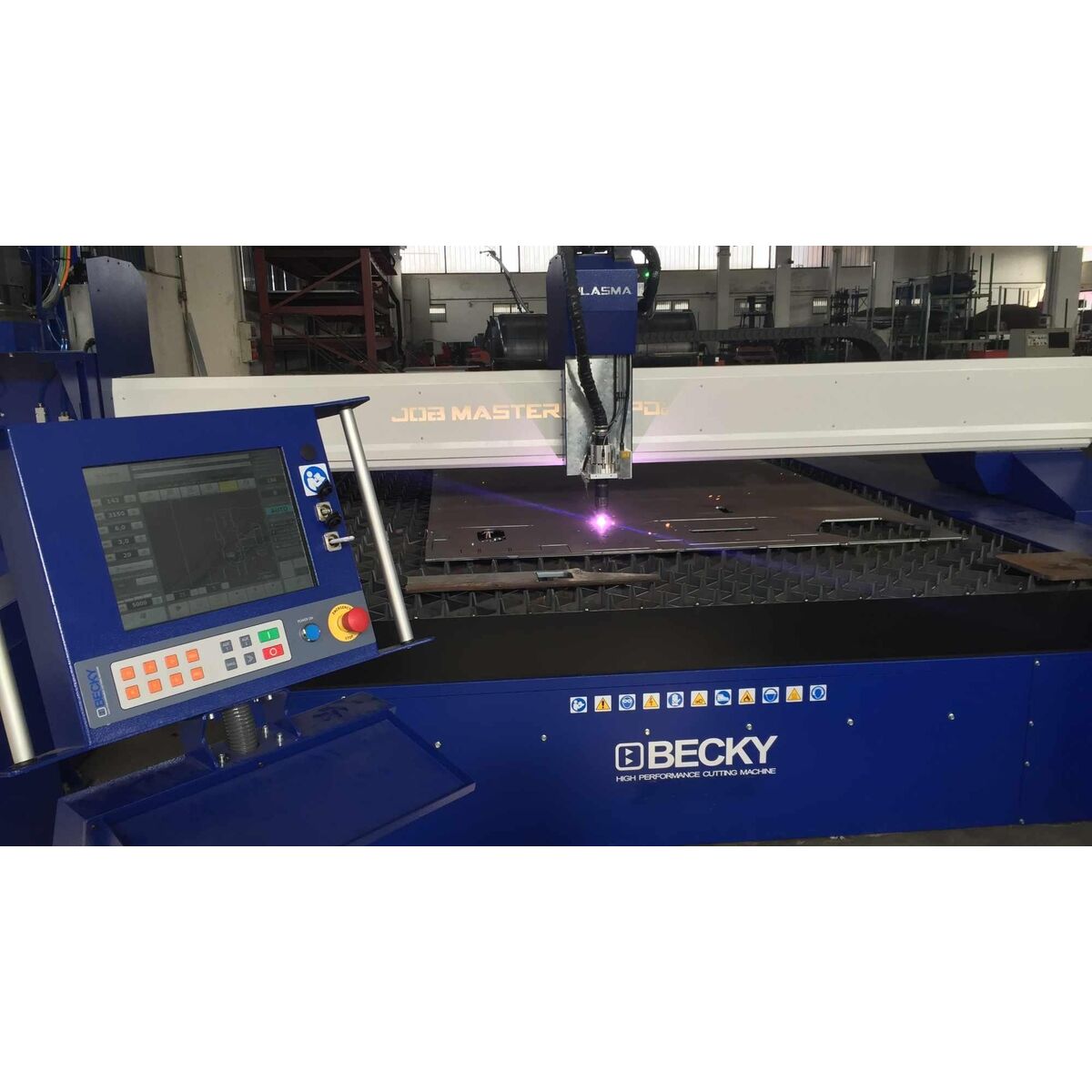 Εξελιγμένο CNC Σύστημα Ελέγχου και Software, με βιομηχανικού τύπου υπολογιστή που διαθέτει οθόνη TFT LCD 15″  αφής (Touch Screen), πλήρες με αρχείο παραμέτρων κοπής ανάλογα με το είδος και το πάχος της λαμαρίνας για την επίτευξη υψηλής ποιότητας κοπής. Η Τεχνολογία FINE HOLE, η οποία έχει μελετηθεί από τη BECKY, παρέχεται με σκοπό τη διάνοιξη απόλυτα στρογγυλών οπών. Το Σύστημα Προγραμματισμού διαθέτει λειτουργία Nesting για τη μέγιστη δυνατή εκμετάλλευση της λαμαρίνας και ελαχιστοποίηση της φύρας. Παρέχει επίσης βιβλιοθήκη γραφικών και εικόνων μέσα από τις οποίες ακόμη και οι πιο απαιτητικές κατεργασίες να γίνονται εύκολα προσιτές για το χειριστή